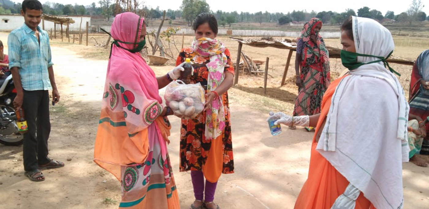 PRADAN’s Sarai office turned into a workshop for preparation of food-safety items packs. Kits consisting of 1 kg of pulses, 1 kg of onion, 2 kgs of potatoes, one pack salt (2kg), turmeric powder (100 gm), soybean, 1 liter oil, and two soaps. Also all the change agents including volunteers, CRPs, CSPs who were involved in the data collection and distribution process, were provided with safety masks, gloves, sanitizers and soaps. Around 750 kits have been distributed so far with the help of VO members in around 60 villages in Deosar and Waidhan block. Apart from food kits distribution, awareness generation around COVID-19 and safety measures is also happening using village volunteers. The financial support for this venture came from Azim Premji Philanthropic Initiatives.